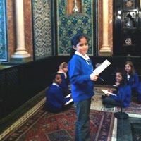 be open to the whole community all day, but behind the new school entrance gates at night. Year 5 and 6 went to the opulent Leighton House Museum to draw. Located on the edge of Holland Park in Kensington, the house is one of the most remarkable buildings of the 19th century. It was the former home and studio of the leading Victorian artist, Frederic, Lord Leighton (1830-1896). The Arab Hall is the centerpiece of the house where Lord Leighton used to entertain, complete with a fountain. It was designed to display Leighton's priceless collection of over a thousand Islamic tiles, mostly brought back from Damascus in Syria as well as peacock blue tiles by the ceramic artist William De Morgan. On the first floor is Leighton's grand painting studio. The drawings have been collaged into a design for a mosaic that we then made with the pupils in the school in December. Many of the staff, some parents and Governors also helped the children to make their Leighton House inspired mosaic. Headteacher John Towers said "it's such a fantastic piece of work, it looks beautiful". We are looking forward to putting it up when the weather warms up in the Spring and seeing the different colours and textures brightening up the school entrance and sparkling in the sunshine. |