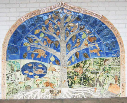 | making the mural in clay | the pupils helped to paint the wall | they worked hard and many hands made light work |